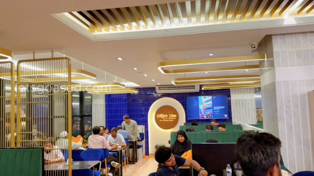 আমরা গিয়েছিলাম Sultan’s Dine-এর ধানমন্ডি ব্রাঞ্চে, যা জিগাতলার কাছেই অবস্থিত। এই শাখার ইন্টেরিয়র সত্যিই খুব সুন্দর আর অ্যাম্বিয়েন্স পুরোপুরি ফ্যামিলি-ফ্রেন্ডলি। বসার ব্যবস্থা আরামদায়ক, হালকা মিউজিক, সব মিলিয়ে একটা চমৎকার পরিবেশ। শুধু ছুটির দিন বা বিকেলে একটু ভিড় থাকে, তাই টেবিলের জন্য অপেক্ষা করতে হতে পারে।